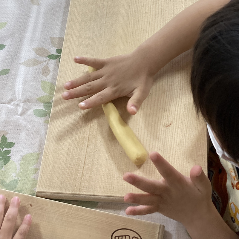気持ちも準備も整い、待ちに待った年少あか組、ドーナツ作りの日がやってきました。