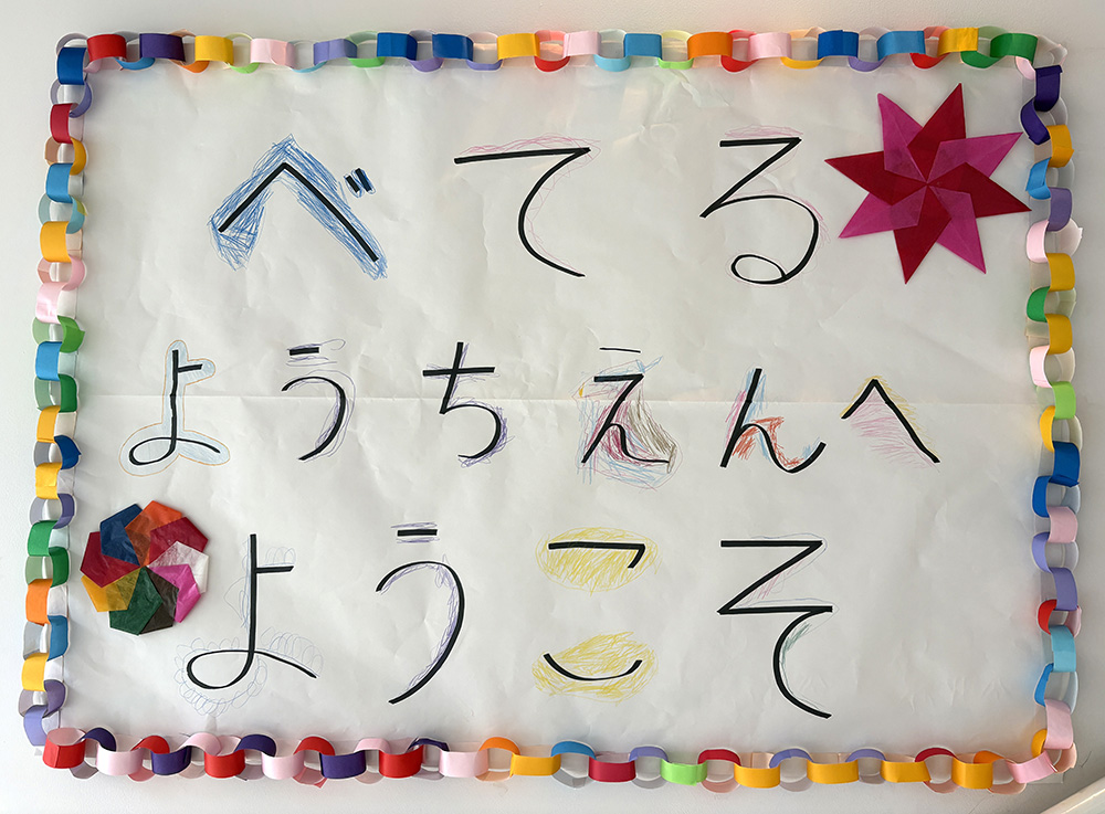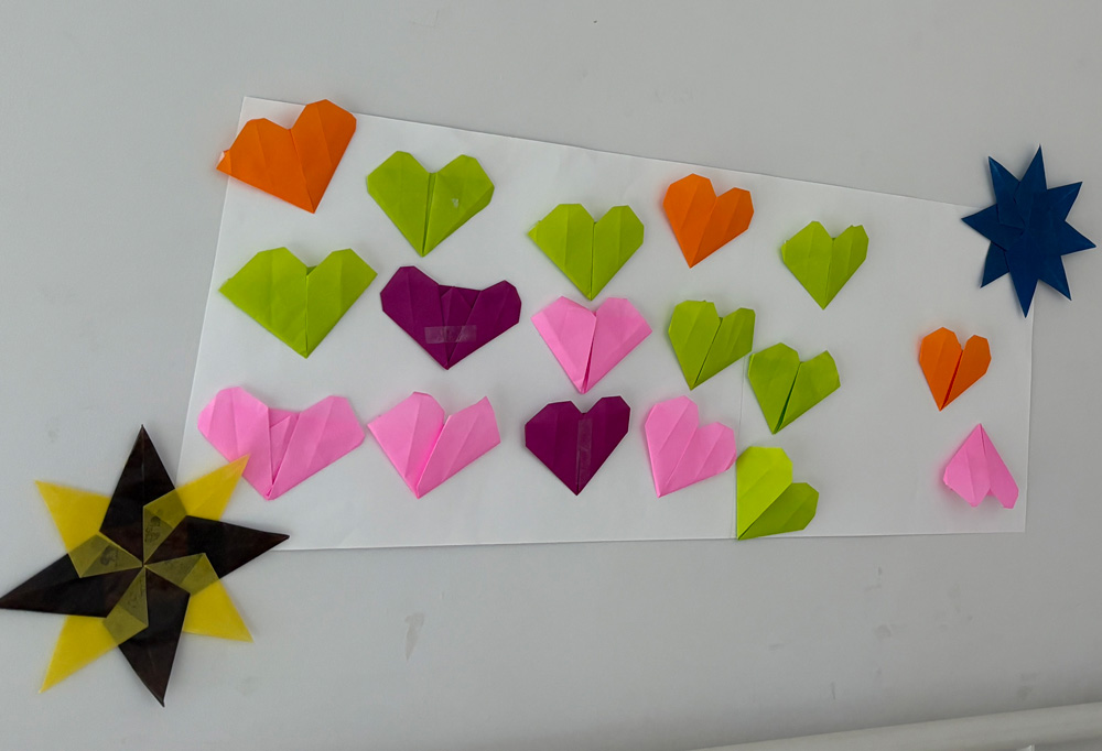 年中き組は、「新しいお友だちにハートを送りたい!」と、みんなでハートを折って飾りました。