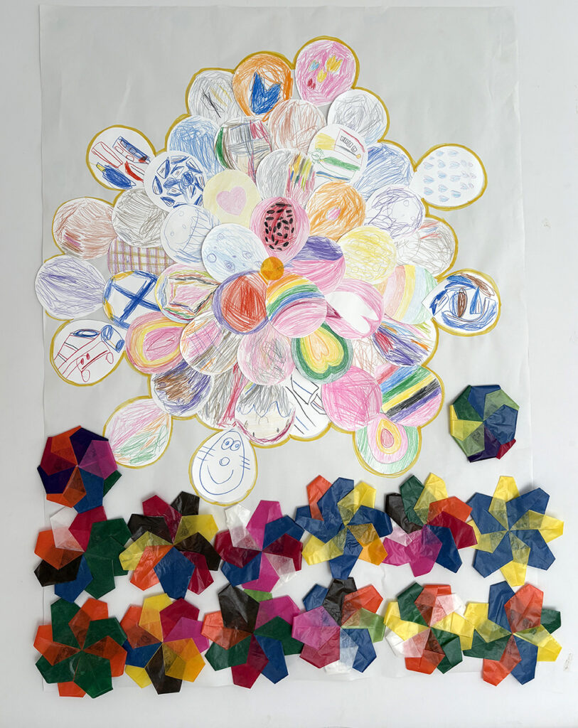 年長みどり組が、新しく迎えるお友だちのためにお花の飾りを作りました。